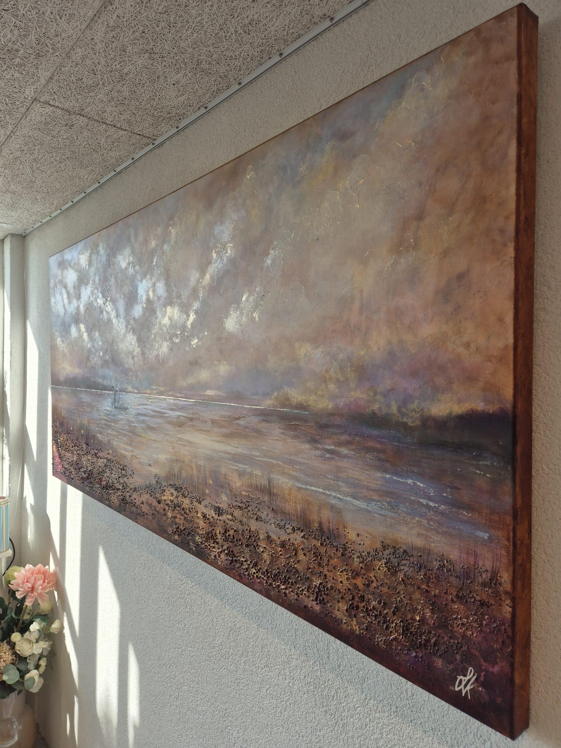 Maleriet er malet på et dansk produceret kvalitetslærred med ekstra dybde. De 4 cm. dybe sider på maleriet er malet i en smuk, varm jordfarve, der passer til værket. Svæveramme er muligt og du er velkommen til at kontakte Linda for høre mere om dine muligheder.