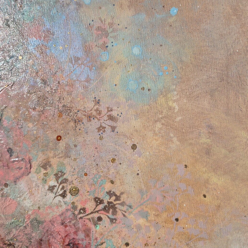 Som altid er der tilføjet detaljer i lysreflekterende guld og perlemor for at skabe liv og spænding. Dette skaber et levende maleri, der ændrer farvens valør alt efter, hvor du beskuer maleriet fra. Disse effekter, som changerer og påvirkes af lyskilder, er med til at skabe et levende værk, der er eventyrligt at beskue fra forskellige vinkler i løbet af dagen, hvor lyset ændrer sig. -Det skaber magiske øjeblikke og giver liv i indretningen.